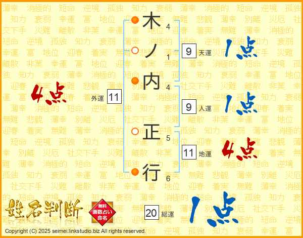 木ノ内正行さんの地運は11画の4点!