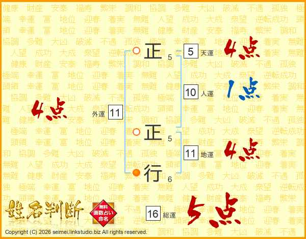 正正行さんの総運は16画の5点!