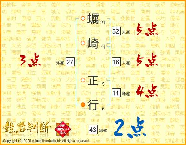 蠣崎正行さんの天運は32画の5点!