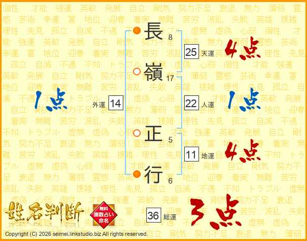 長嶺正行さんの天運は25画の4点!