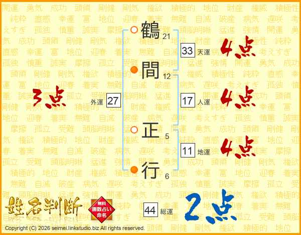 鶴間正行さんの総運は44画の2点!