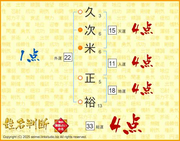 久(3画)次(6画)米(6画) 正(5画)裕(13画)