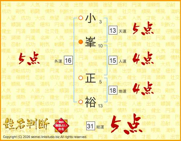 小峯正裕さんの総運は31画の5点!