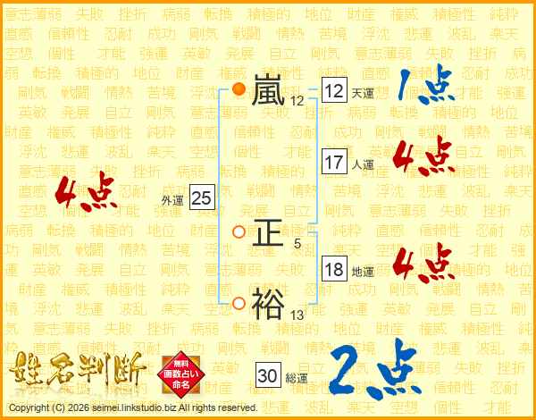 嵐正裕さんの総運は30画の2点!
