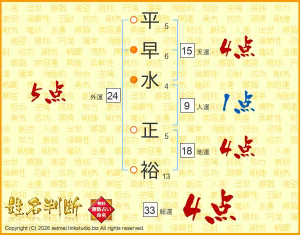 平早水正裕さんの総運は33画の4点!