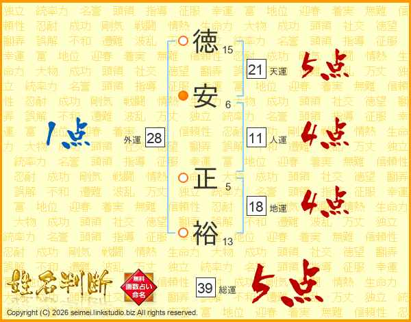 徳安正裕さんの総運は39画の5点!