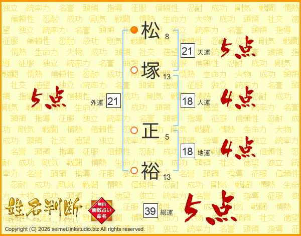 松塚正裕さんの総運は39画の5点!