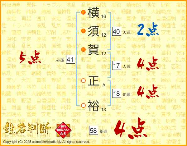 横(16画)須(12画)賀(12画) 正(5画)裕(13画)