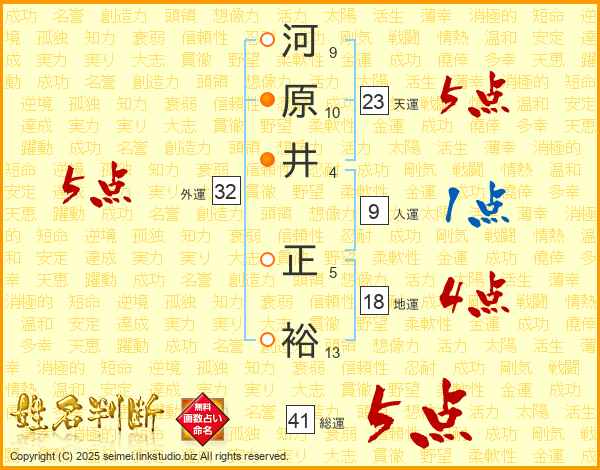 河原井正裕さんの総運は41画の5点!