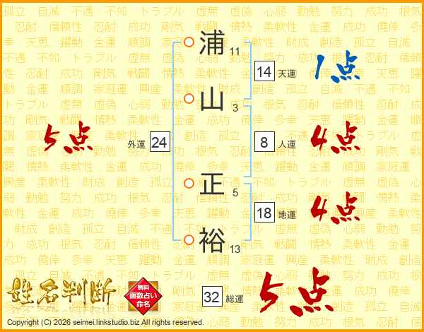 浦山正裕さんの天運は14画の1点!