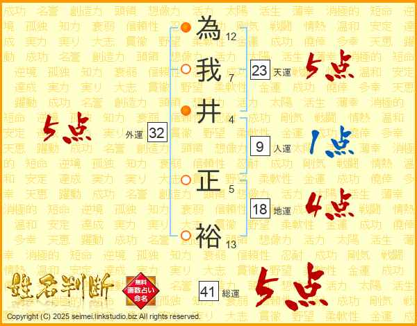 為(12画)我(7画)井(4画) 正(5画)裕(13画)