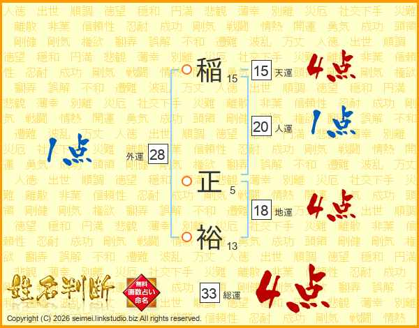 稲正裕さんの総運は33画の4点!