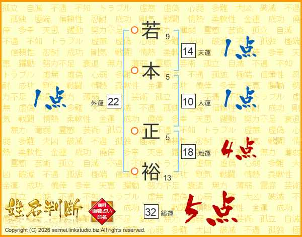若本正裕さんの総運は32画の5点!