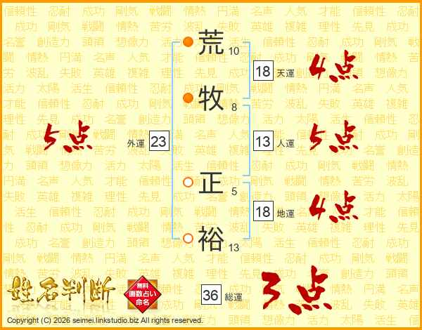 荒牧正裕さんの天運は18画の4点!