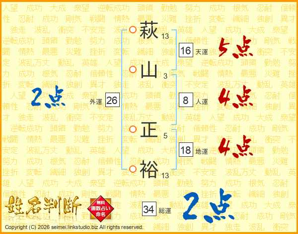 萩山正裕さんの天運は16画の5点!
