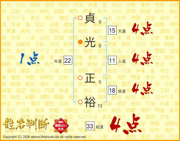 貞光正裕さんの総運は33画の4点!