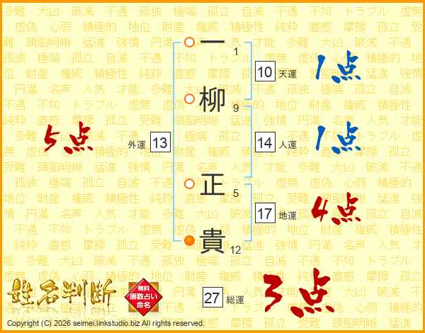 一柳正貴さんの総運は27画の3点!