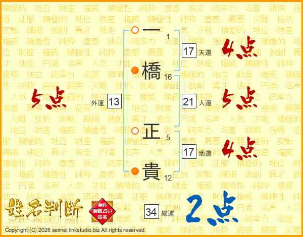 一橋正貴さんの天運は17画の4点!