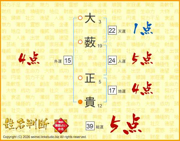 大薮正貴さんの総運は39画の5点!