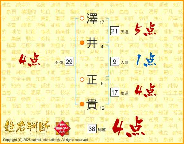 澤井正貴さんの天運は21画の5点!