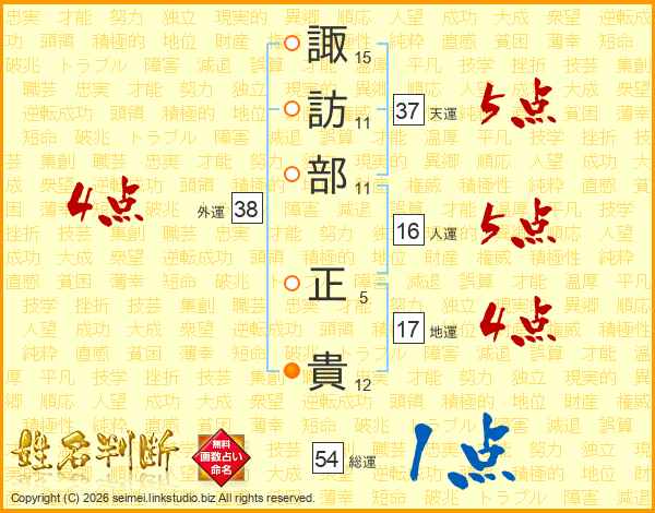 諏訪部正貴さんの天運は37画の5点!