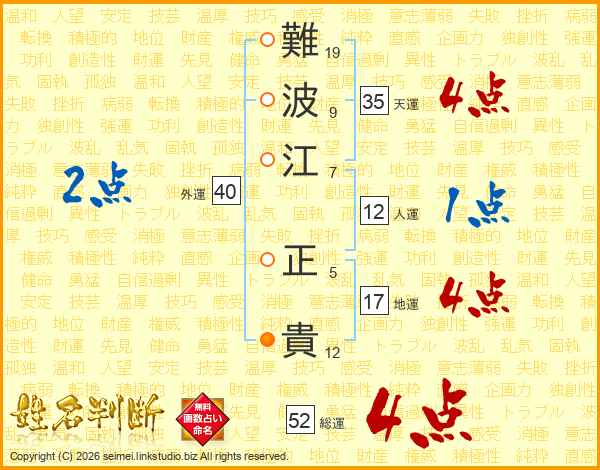 難(19画)波(9画)江(7画) 正(5画)貴(12画)