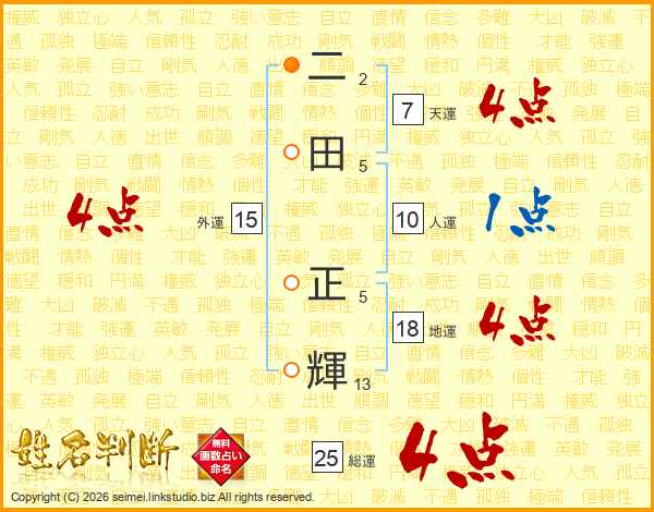 二田正輝さんの総運は25画の4点!