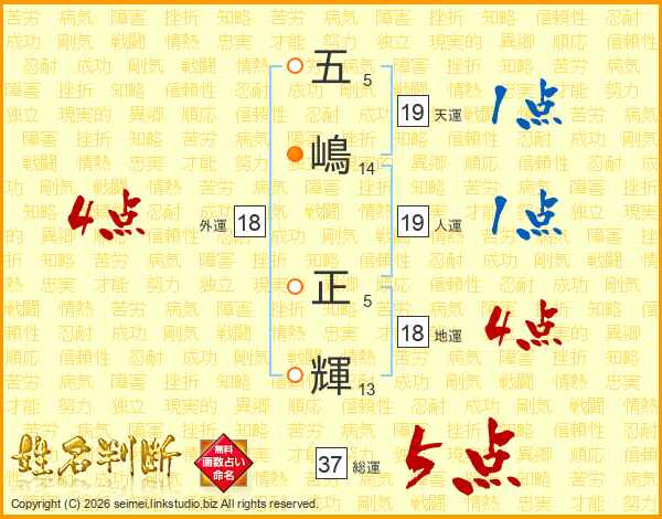 五嶋正輝さんの総運は37画の5点!