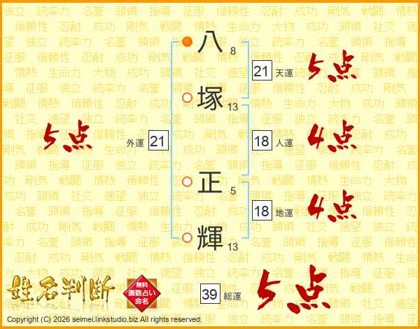 八塚正輝さんの総運は39画の5点!
