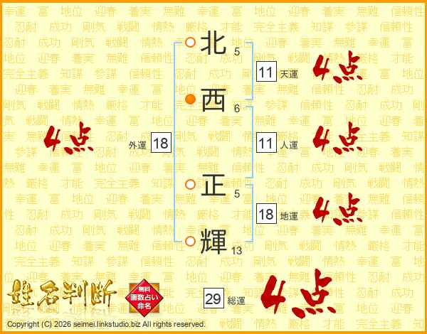 北西正輝さんの総運は29画の4点!