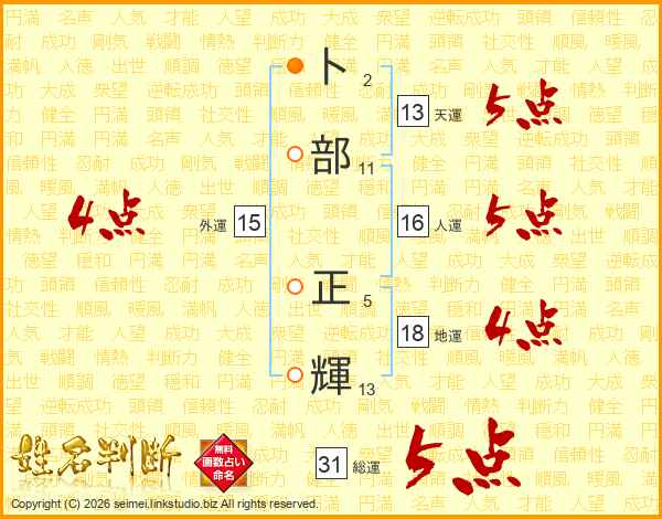 卜部正輝さんの総運は31画の5点!