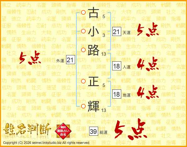 古小路正輝さんの総運は39画の5点!