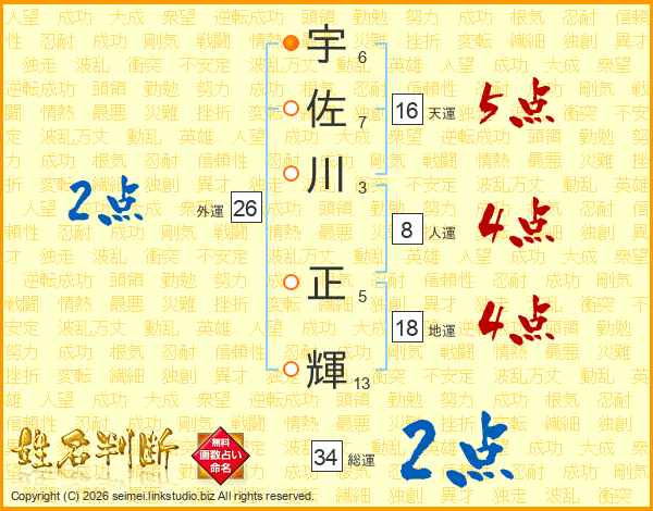 宇佐川正輝さんの総運は34画の2点!