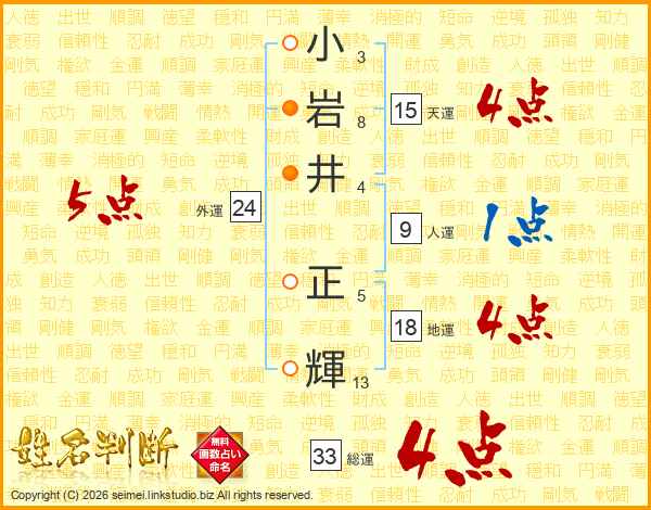 小岩井正輝さんの総運は33画の4点!