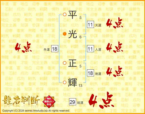 平光正輝さんの総運は29画の4点!