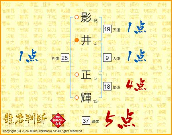 影井正輝さんの総運は37画の5点!