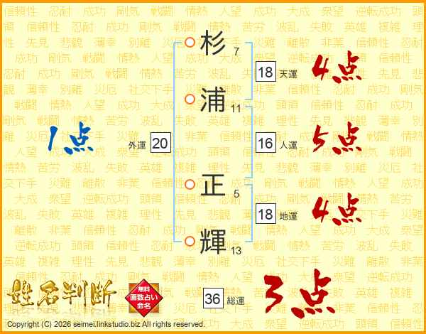 杉浦正輝さんの天運は18画の4点!