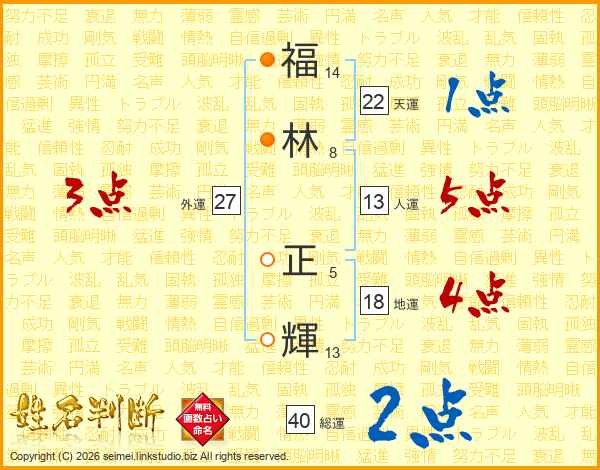 福(14画)林(8画) 正(5画)輝(13画)