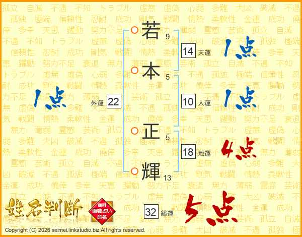 若本正輝さんの総運は32画の5点!