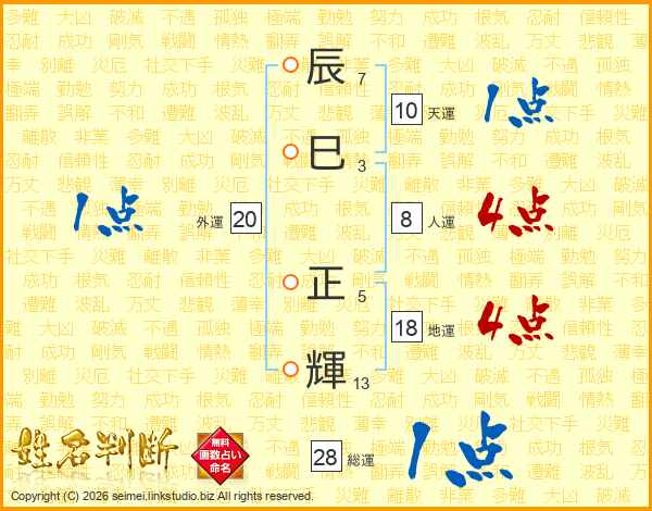 辰巳正輝さんの総運は28画の1点!