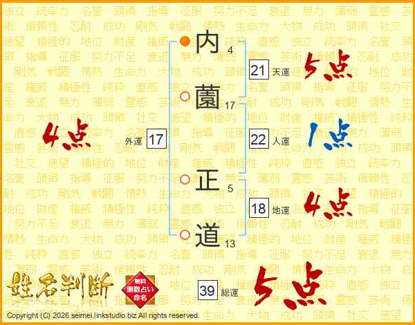 内薗正道さんの総運は39画の5点!
