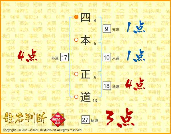 四本正道さんの総運は27画の3点!