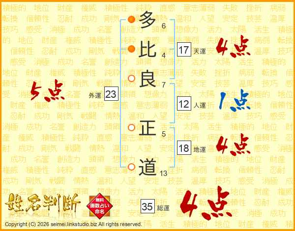 多(6画)比(4画)良(7画) 正(5画)道(13画)
