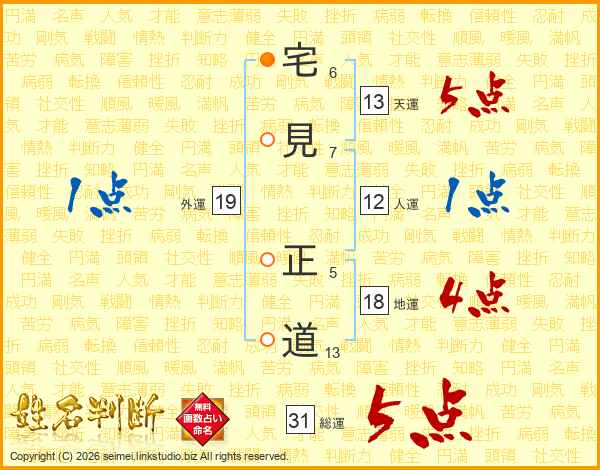 宅見正道さんの総運は31画の5点!