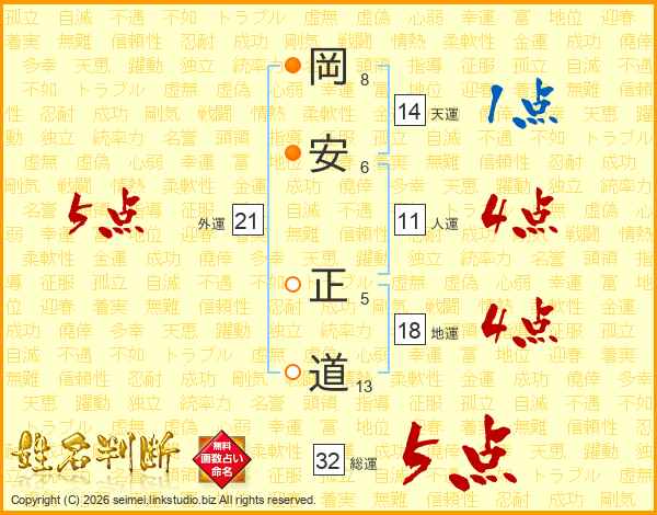 岡安正道さんの総運は32画の5点!