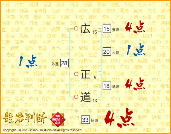 広正道さんの総運は33画の4点!