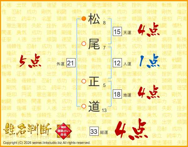 松尾正道さんの総運は33画の4点!