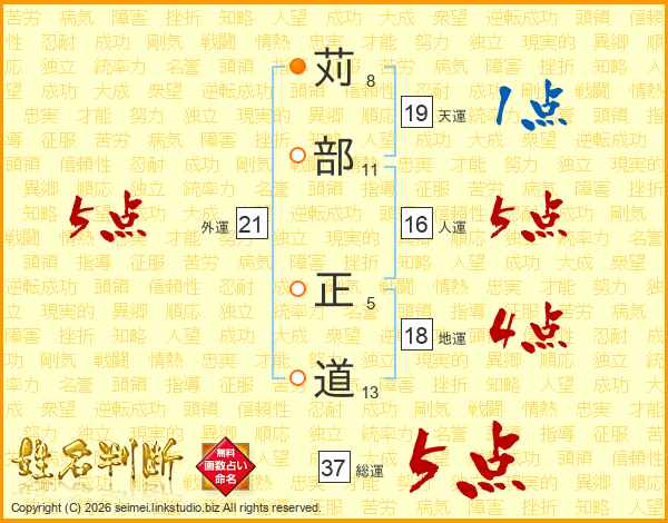 苅部正道さんの総運は37画の5点!