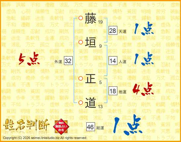 藤垣正道さんの総運は46画の1点!