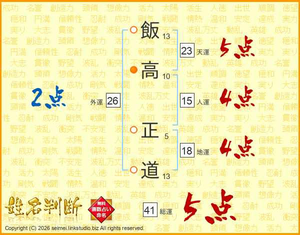 飯高正道さんの総運は41画の5点!